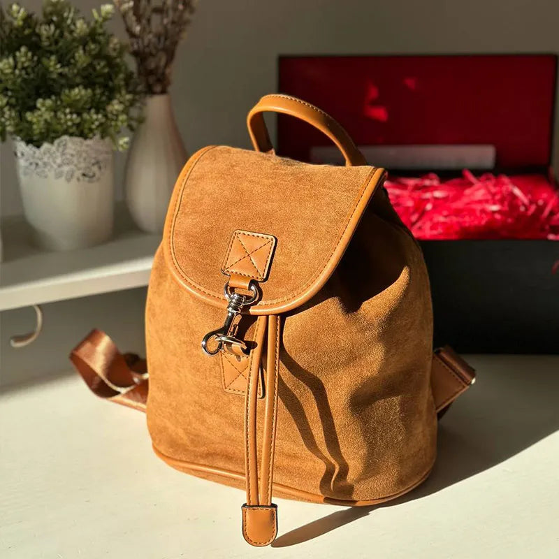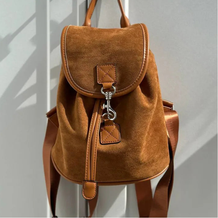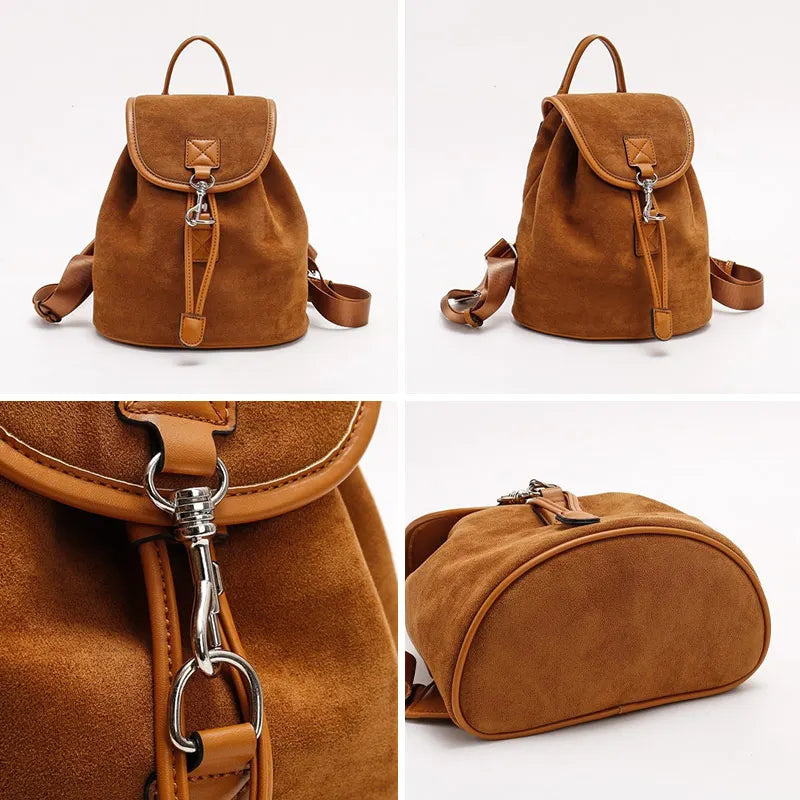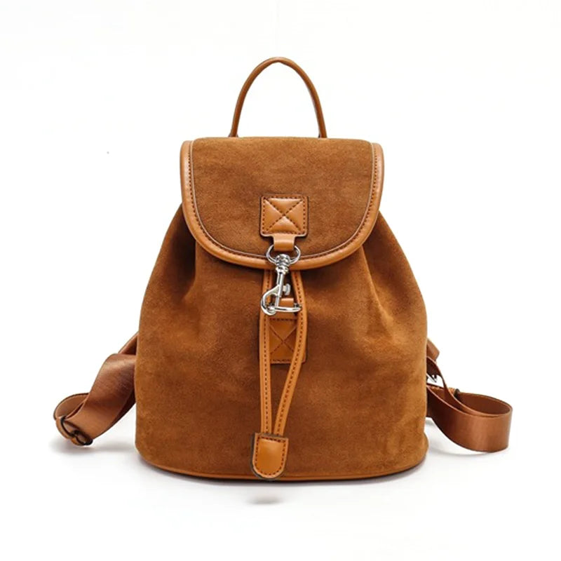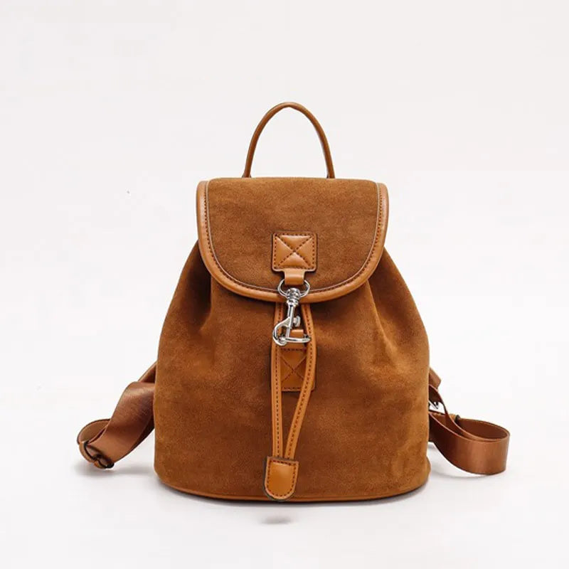Saphira Flannel PU Solid Color Metal Buckle Retro Style Backpack