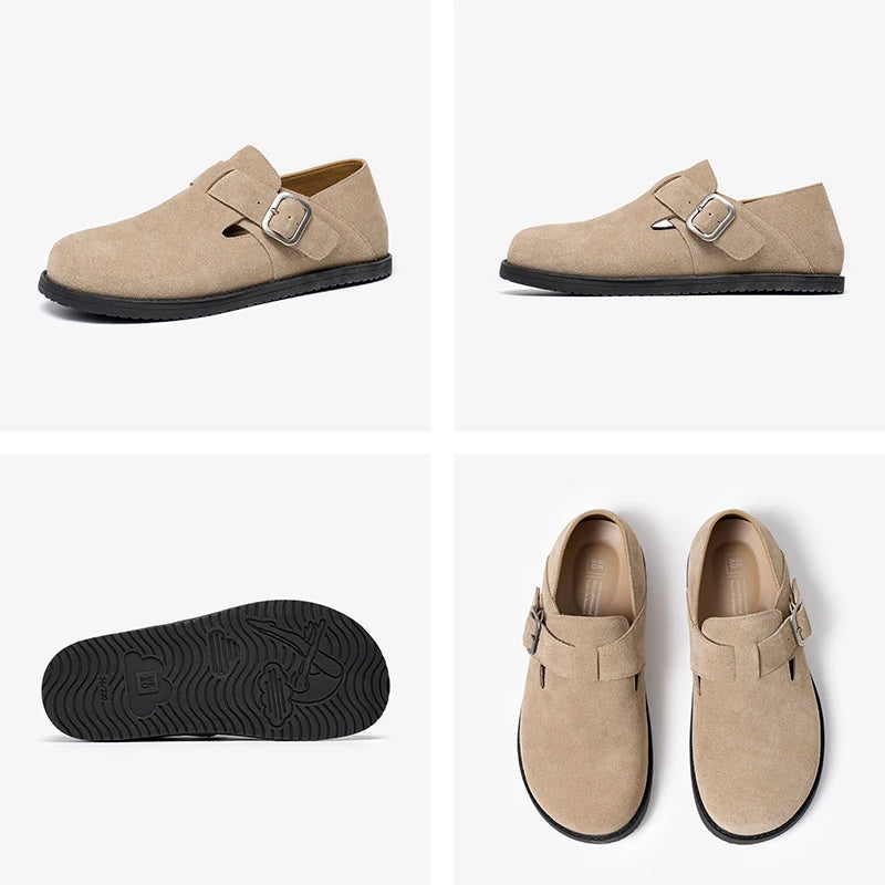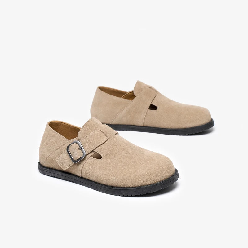 Cow Suede Leather Buckle Strap Round Toe Casual Flats