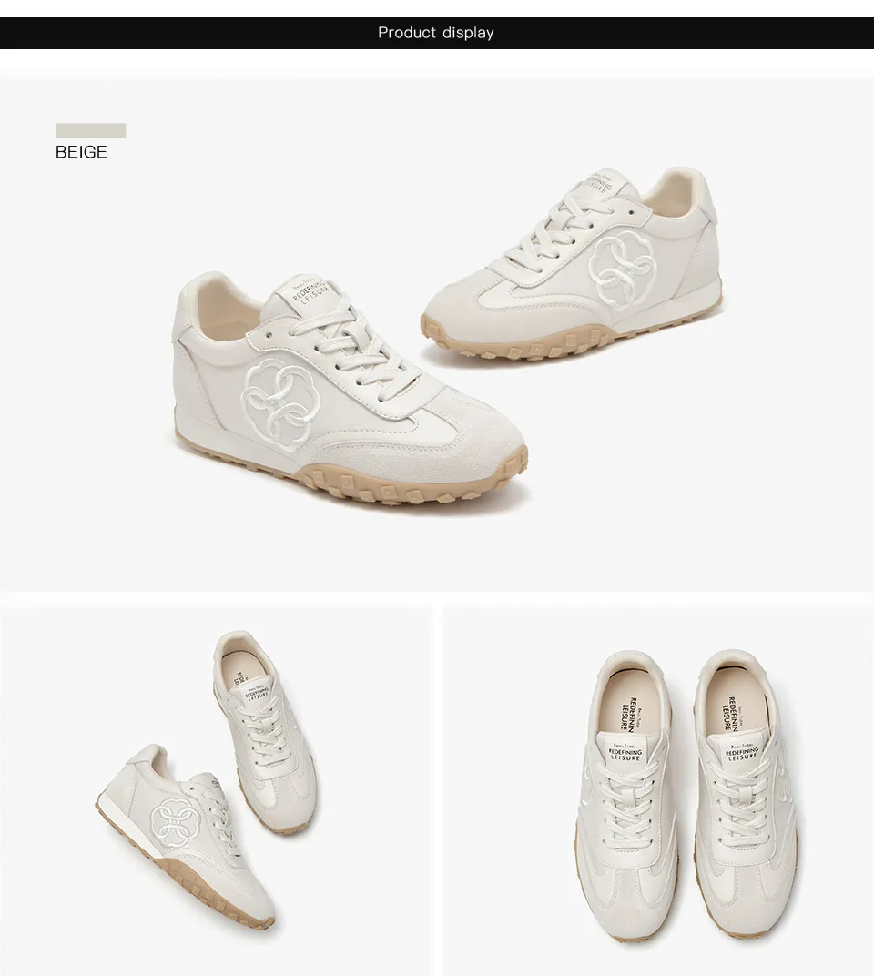 Embroidery Design Round Toe Solid Color Lace up Casual Sneakers