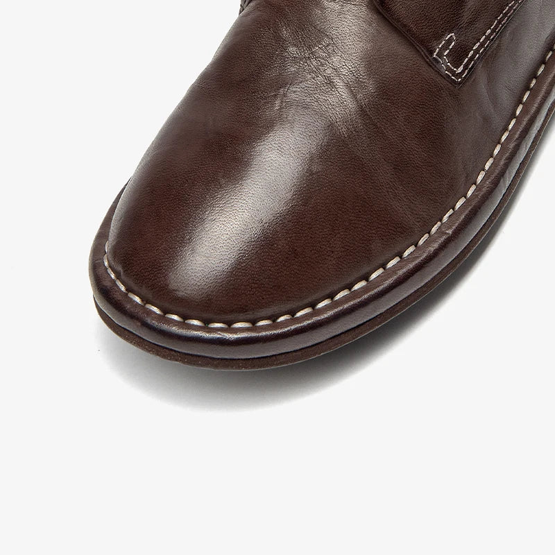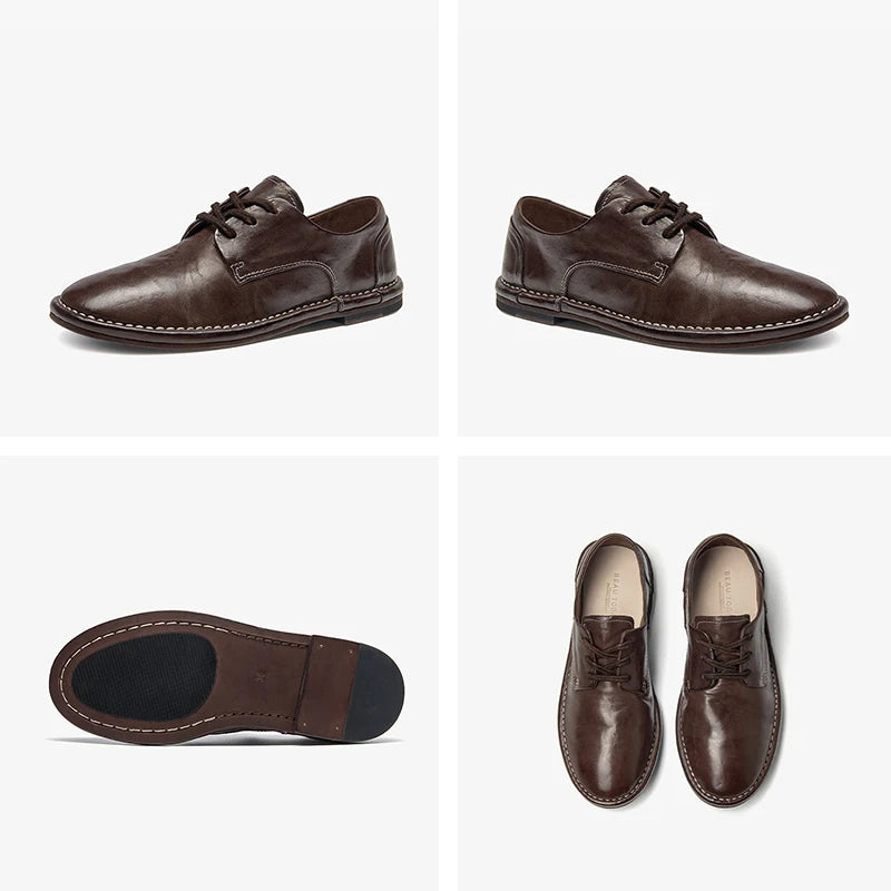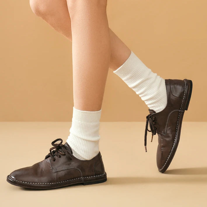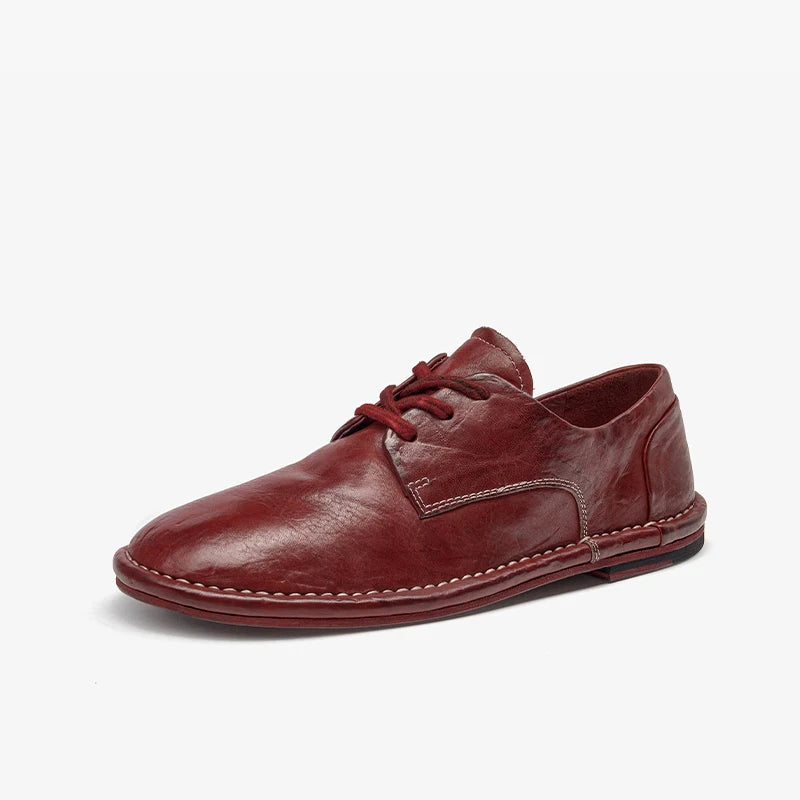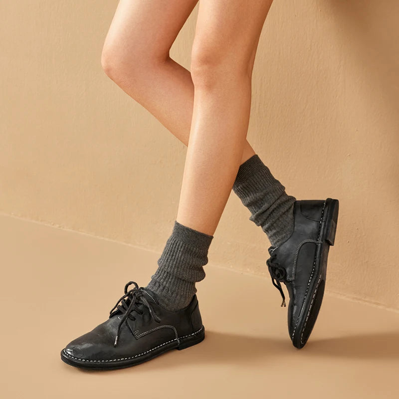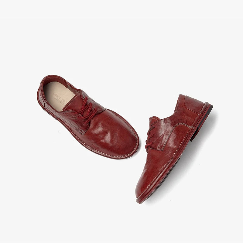 Genuine Horse Leather Solid Color Round Toe Lace-up Classic Oxfords