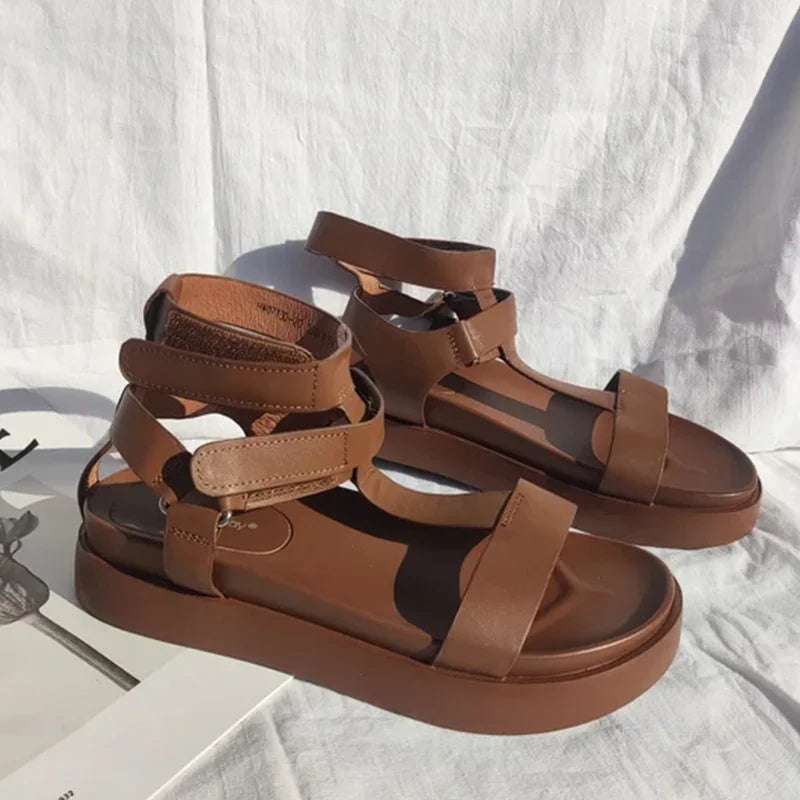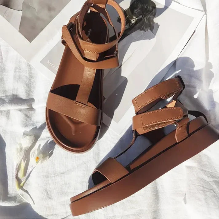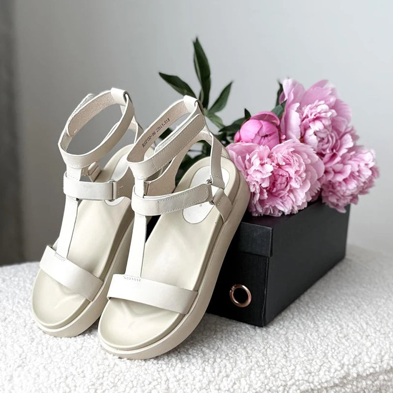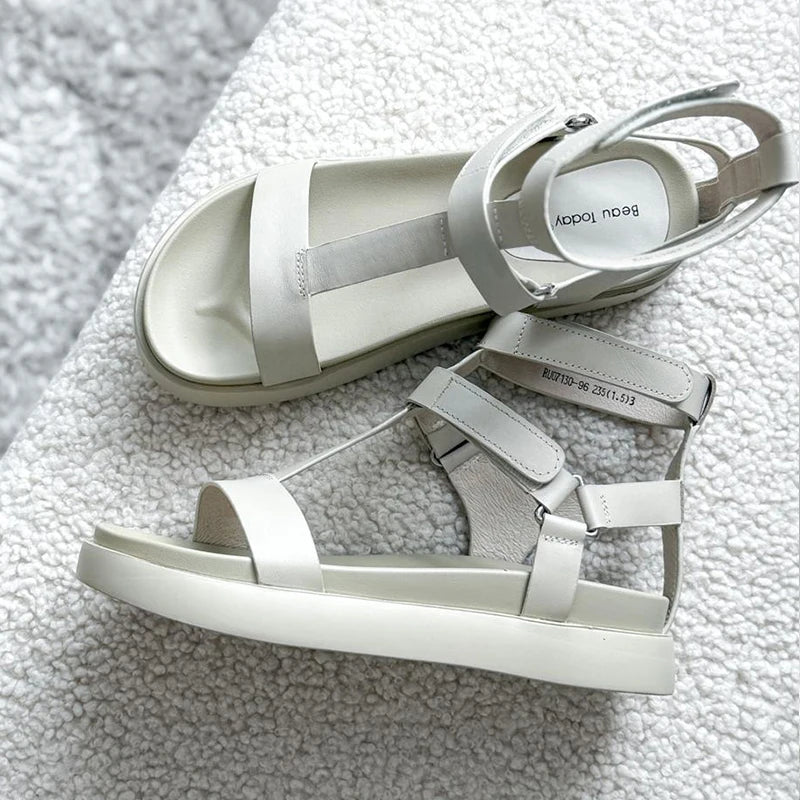 Calfskin Leather Open Toe T-Strap Gladiator Sandals