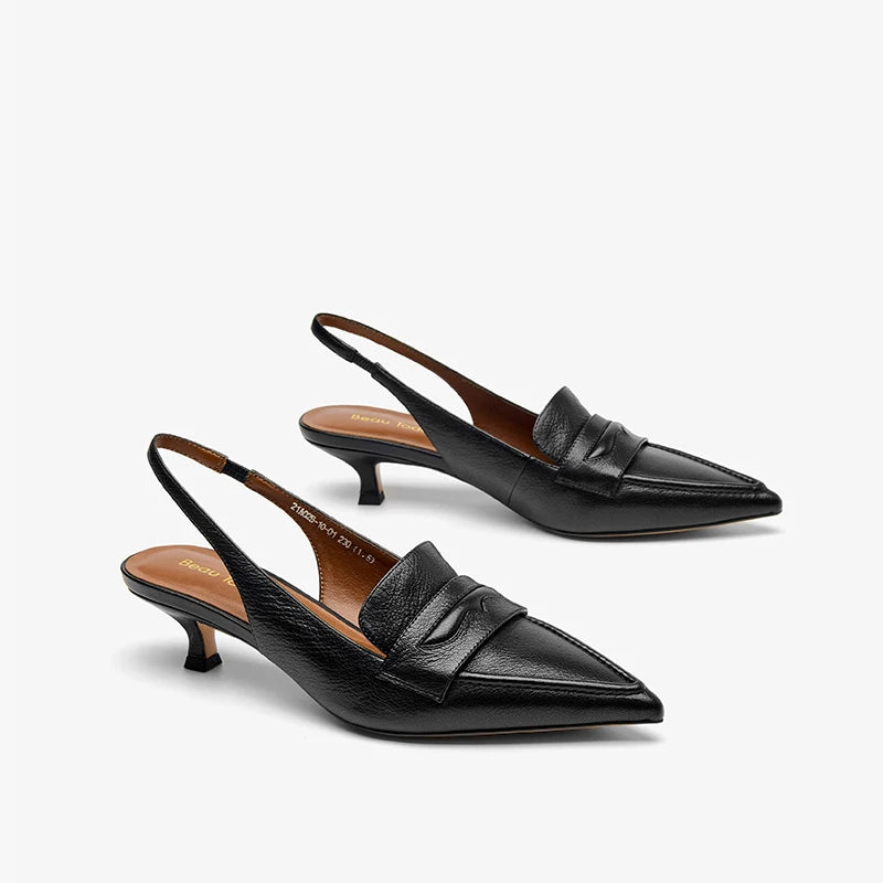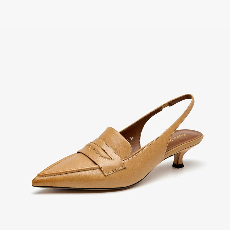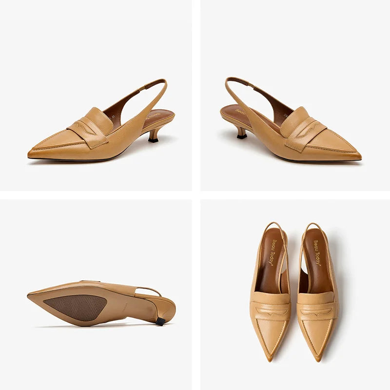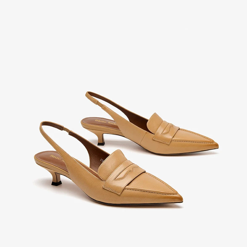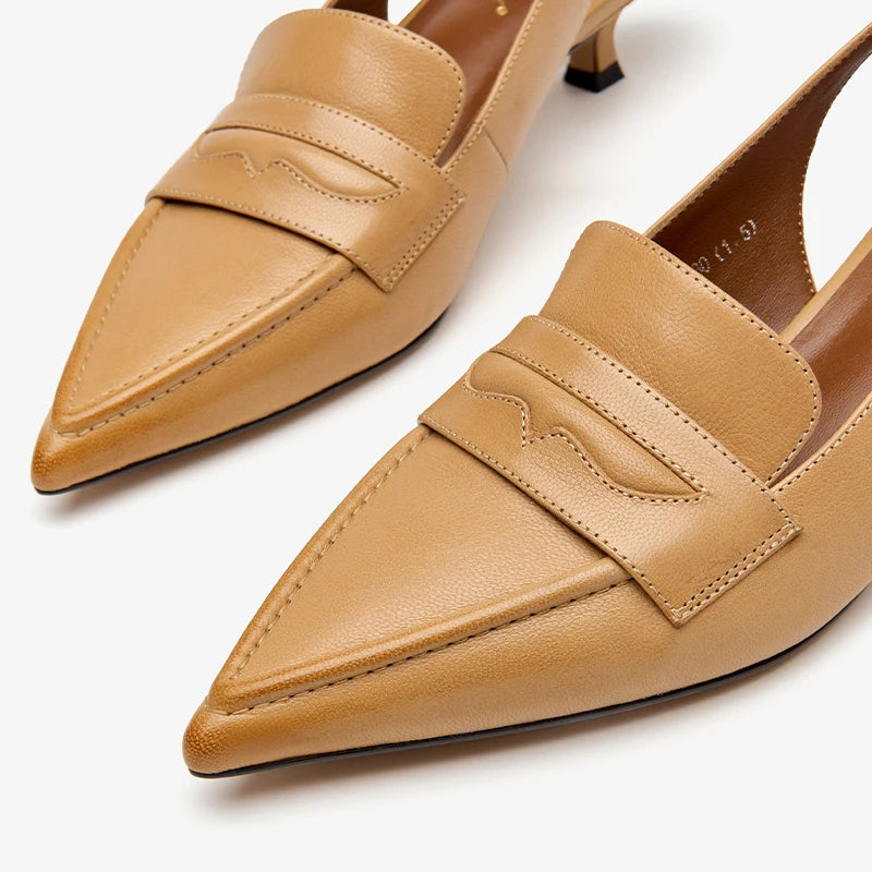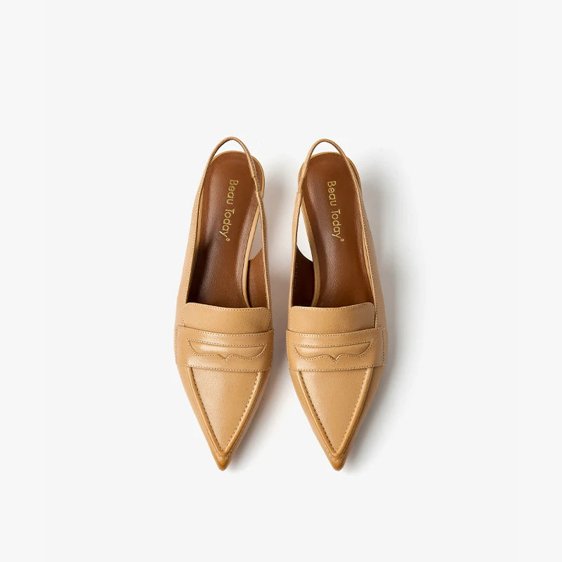 Leather Sheepskin Pointed Toe Pumps Slingbacks