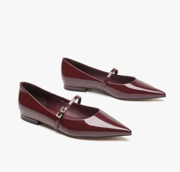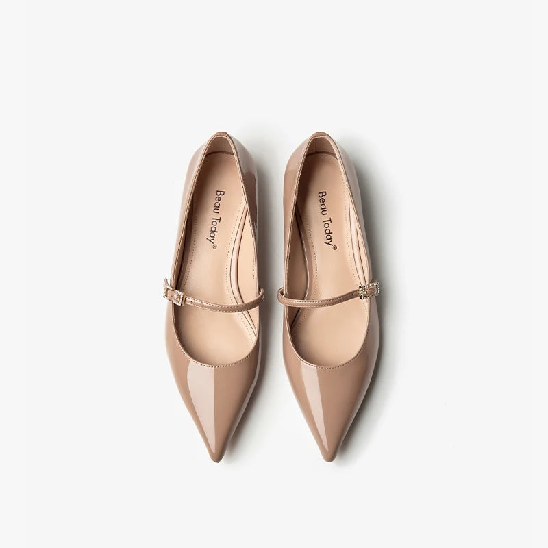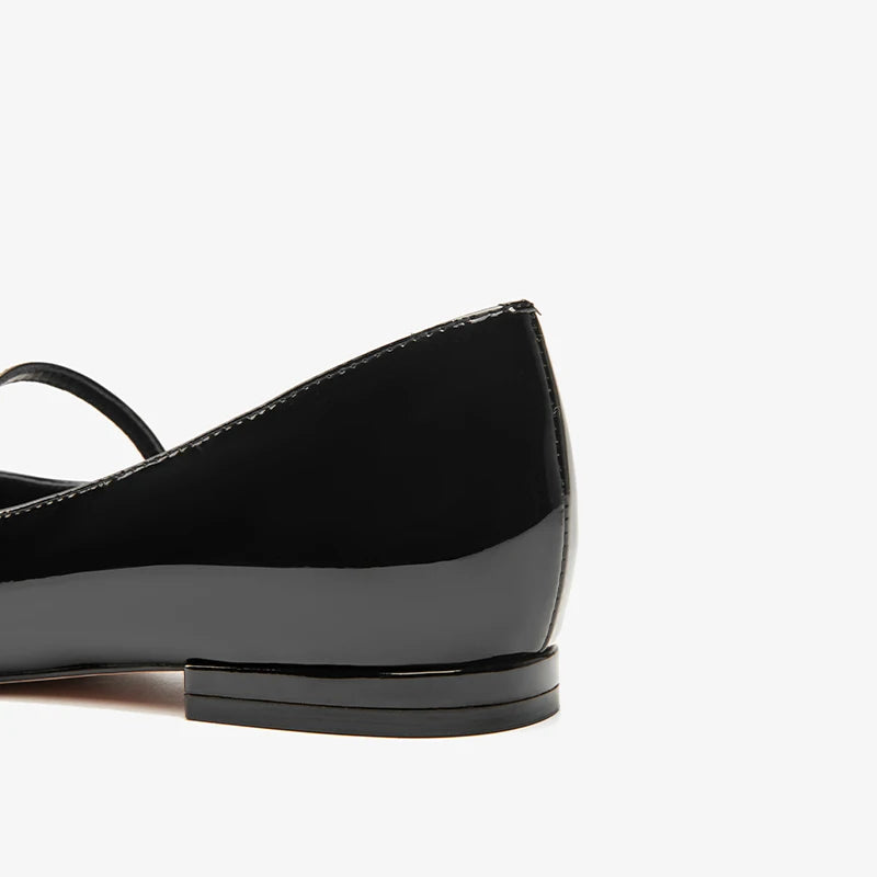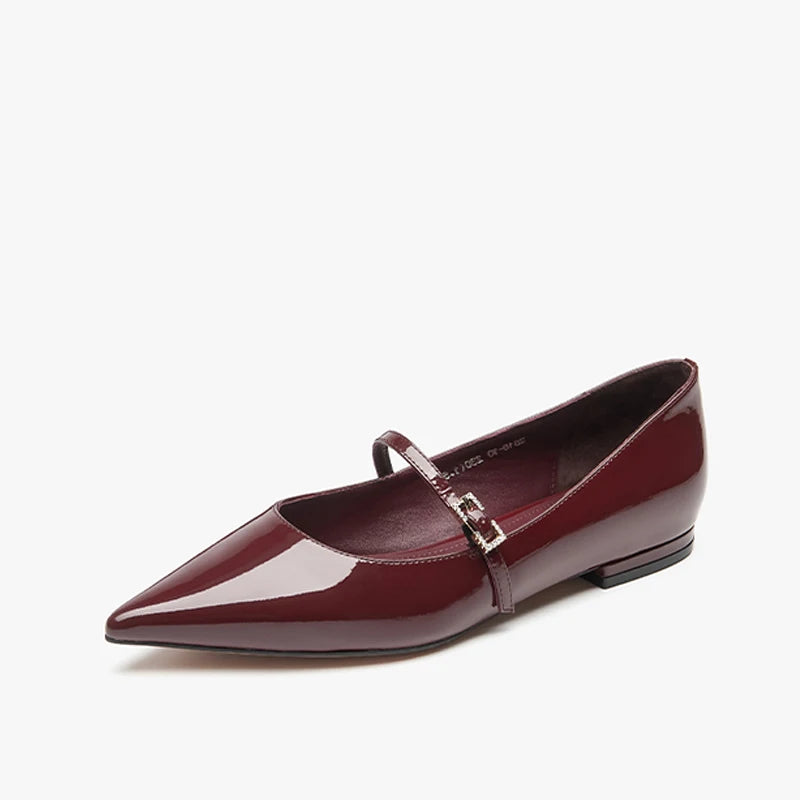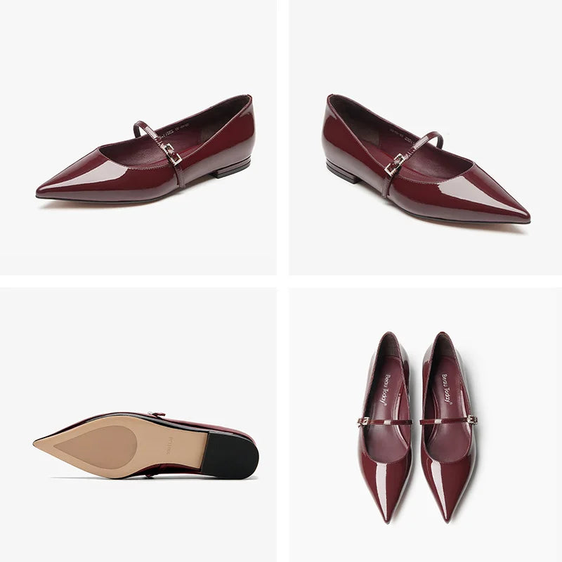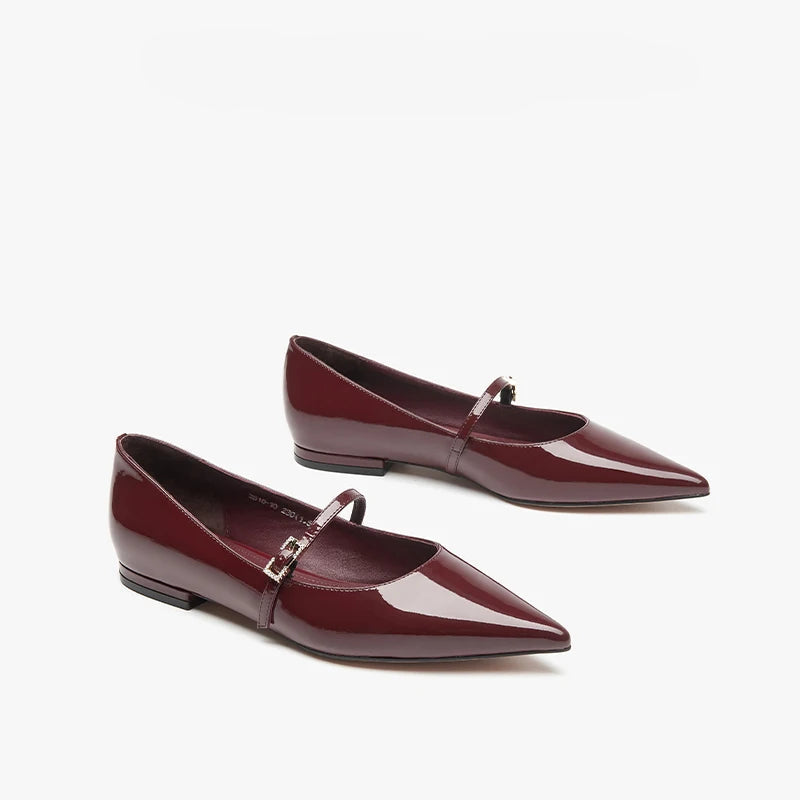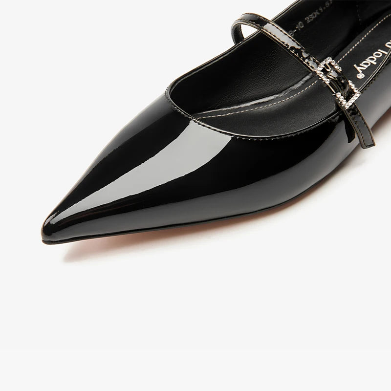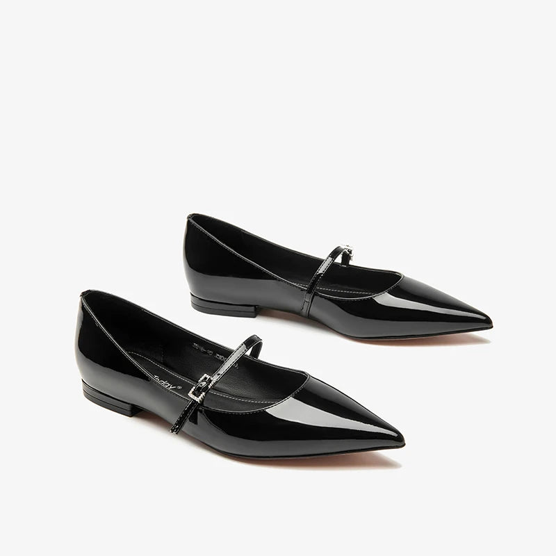 Patent Leather Pointed Toes Buckle Straps Solid Mary Jane Flats