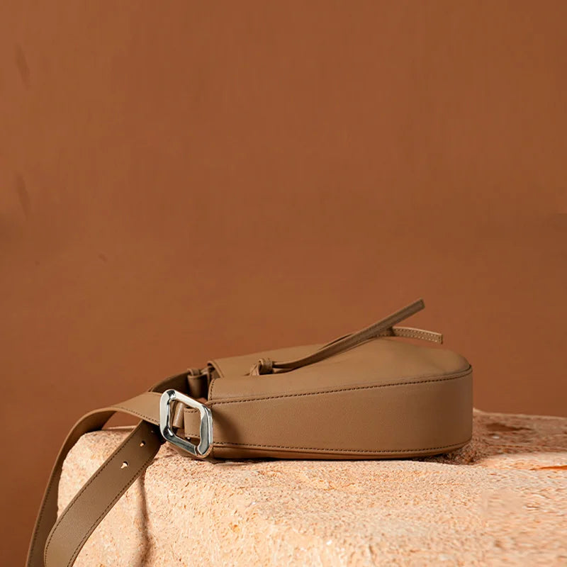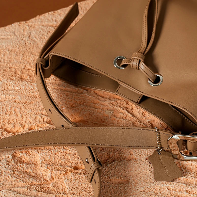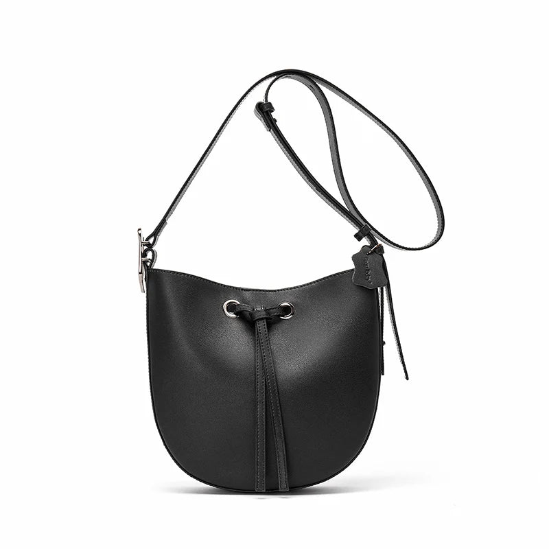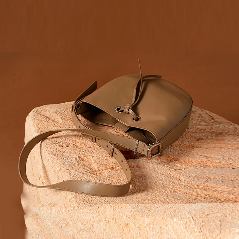 The Cordelia Cow Leather Metal Buckle Solid Long Strap Bucket Bag