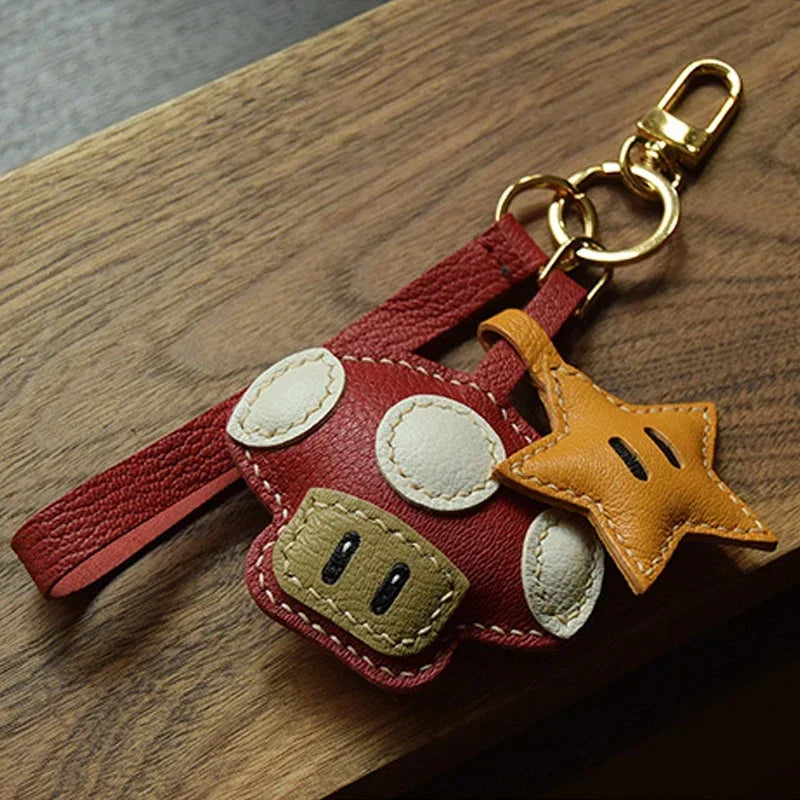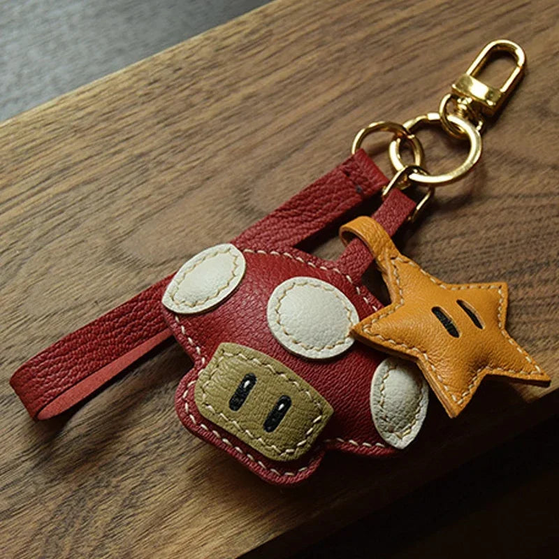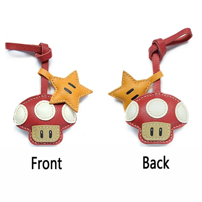 Handmade Leather Mushroom and Star Bag Charm