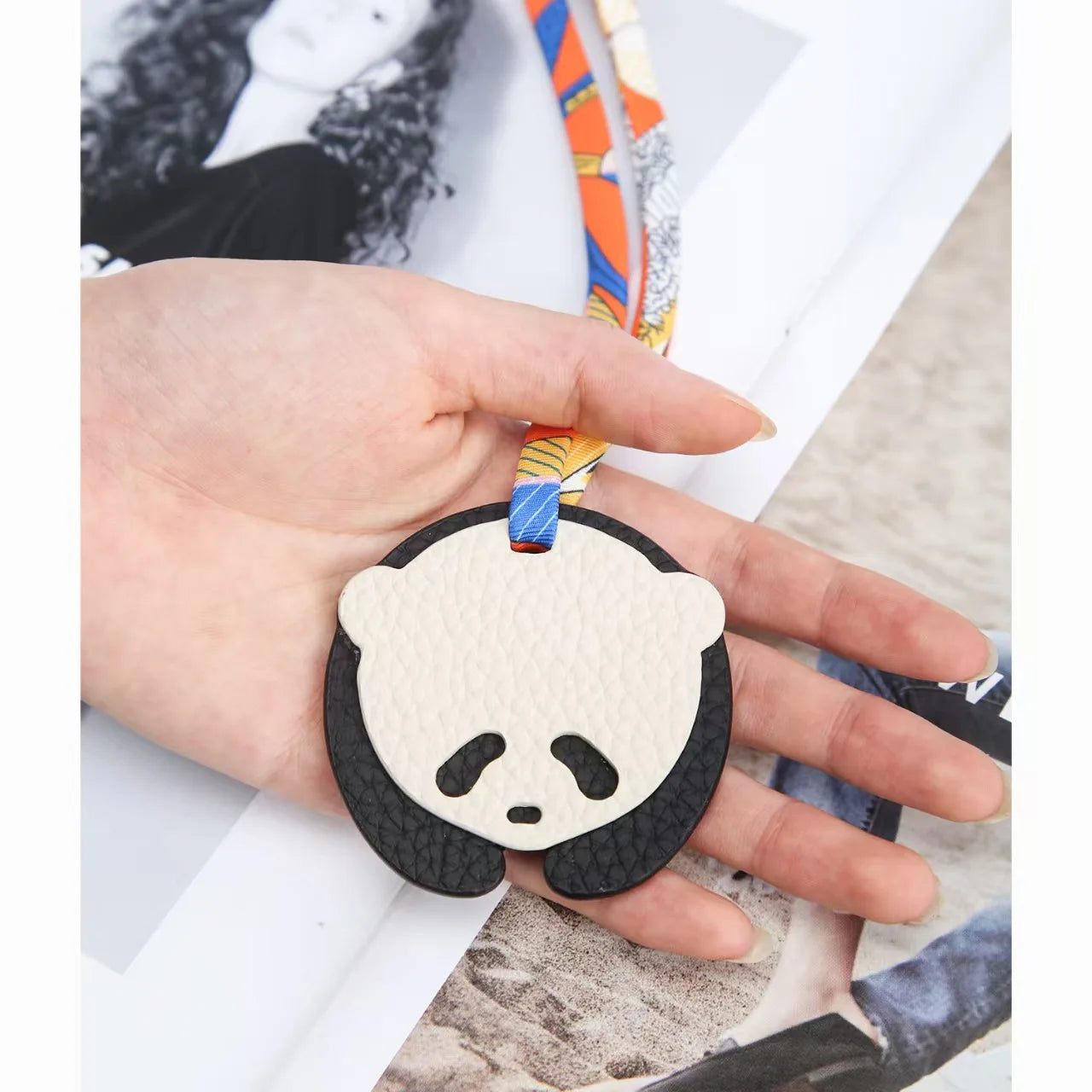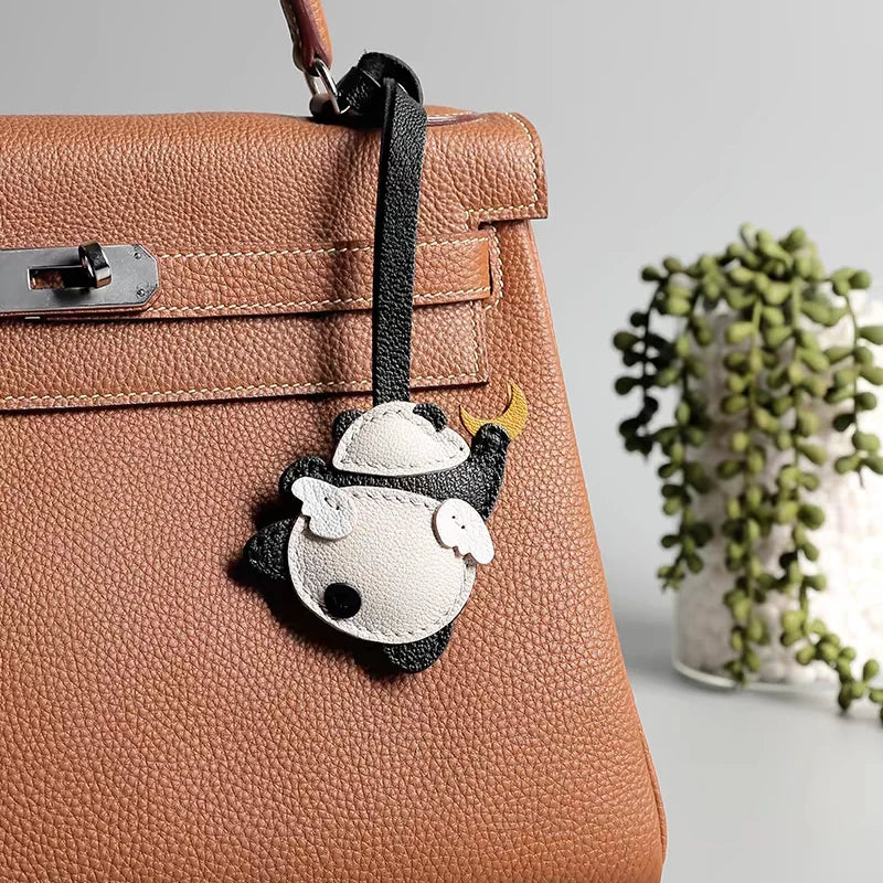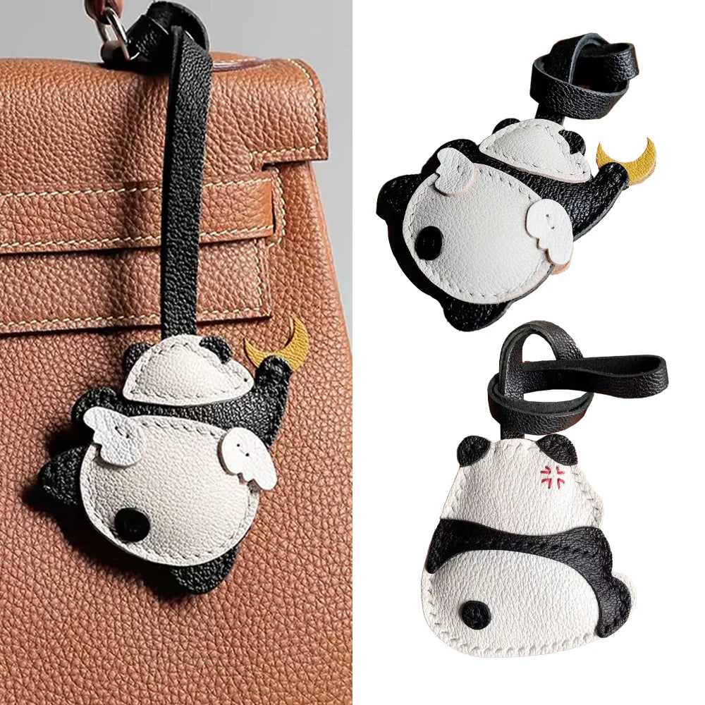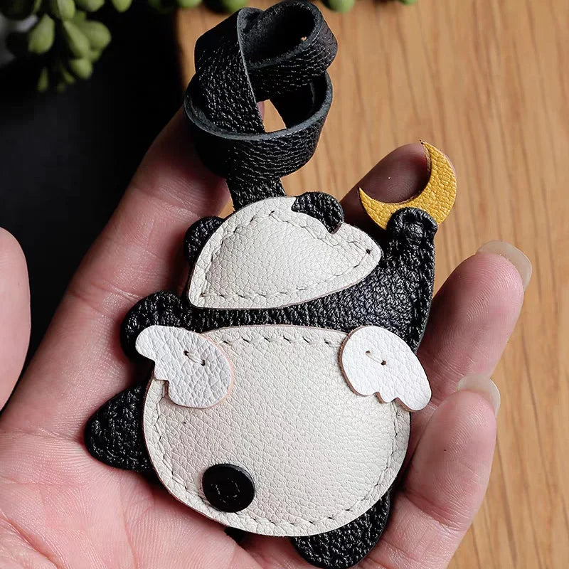 Panda Grasping The Moon Leather Handmade Bag Charm