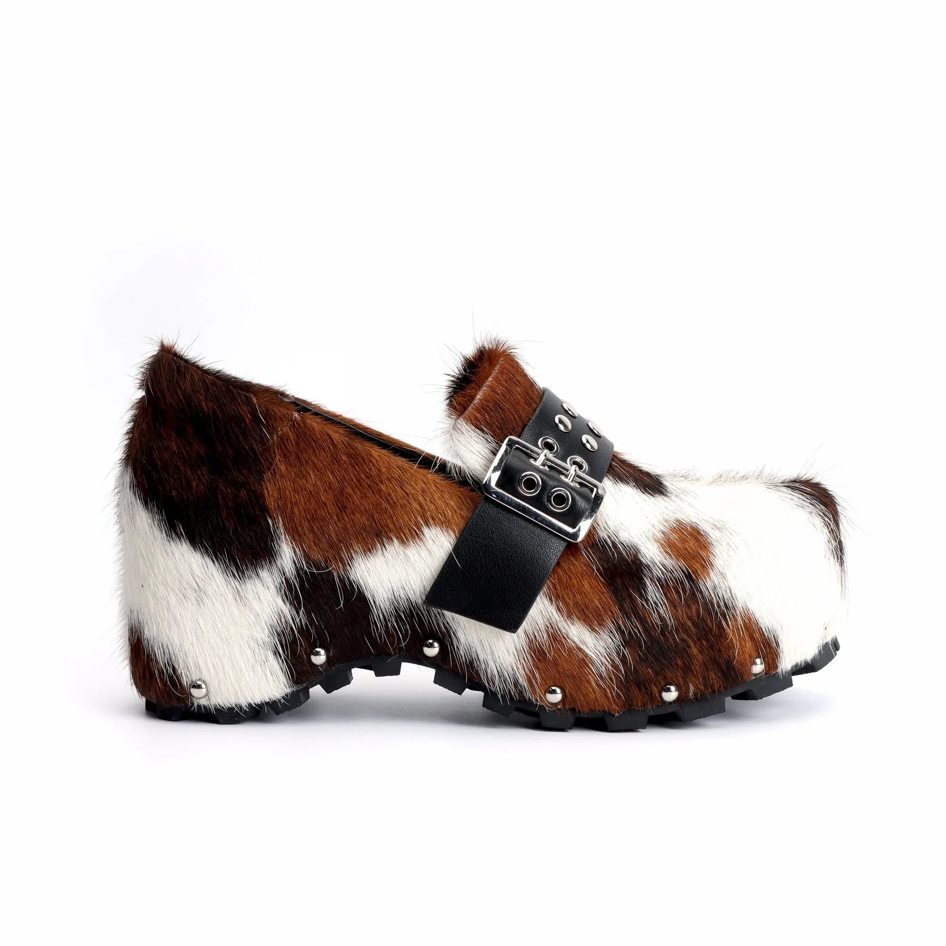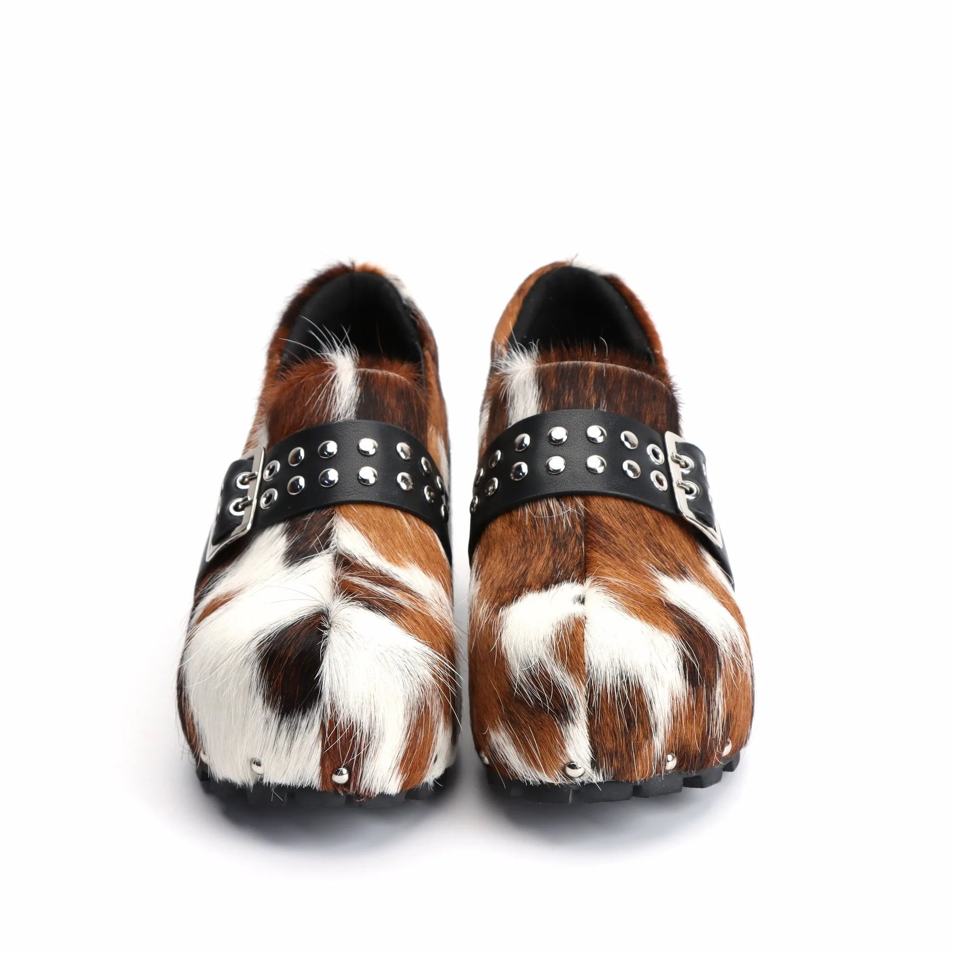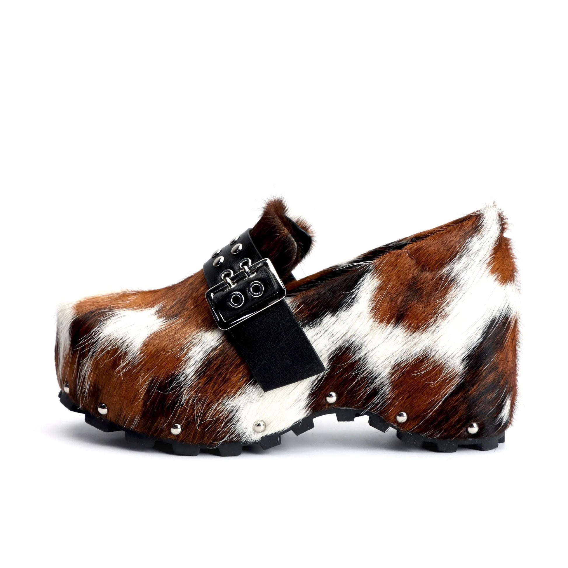 Vintage Punk Western Cowboy Style Handmade Designer Clogs Comfortable Shoes Natural Calf Hair Rivet Trim